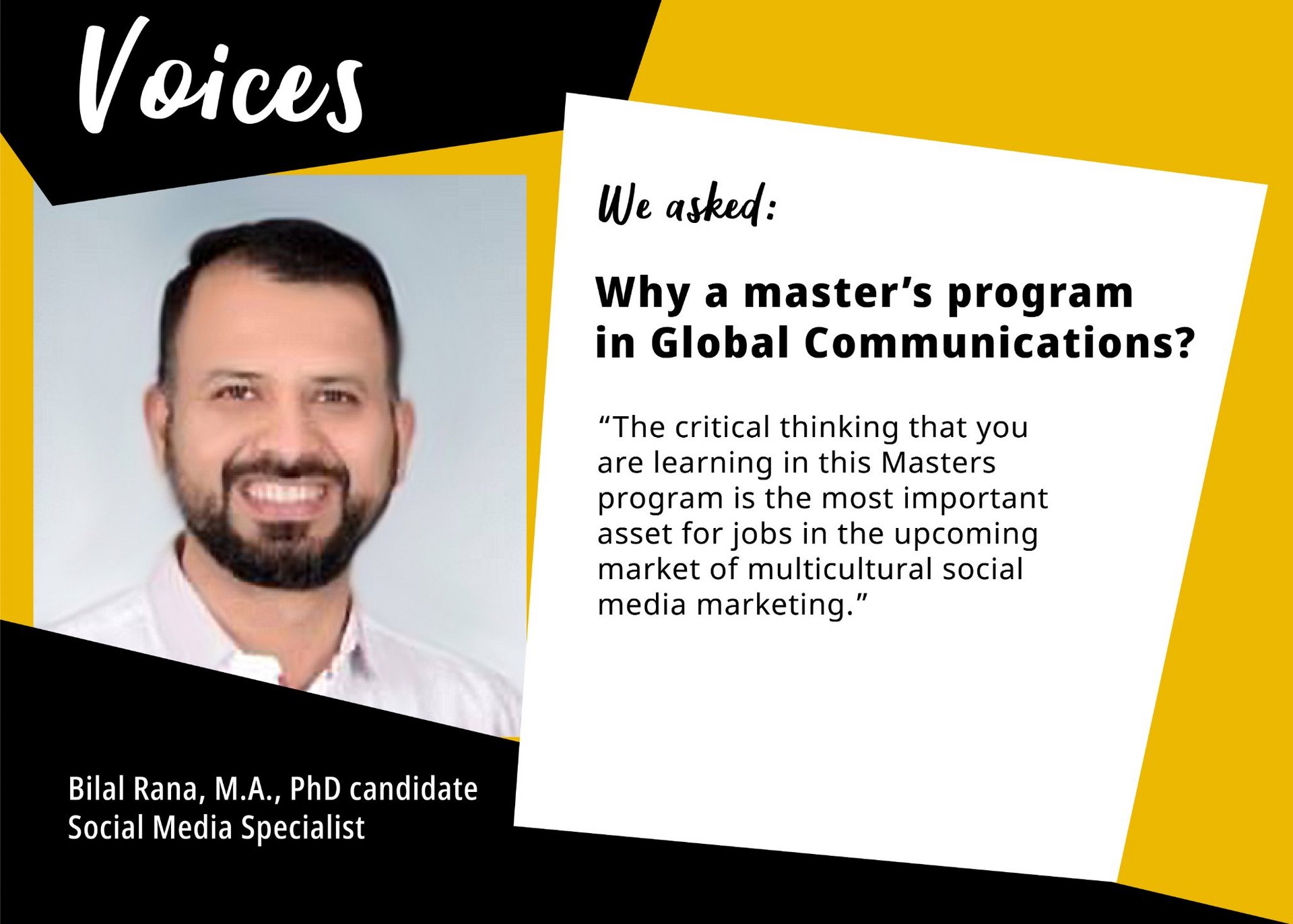 What makes the MA Global Communication so unique is its truly global orientation, which shows both in the widening of its academic lens to include often woefully overlooked regions, societies and media systems of the world and in the wonderfully diverse cultural, academic and personal backgrounds of its students.