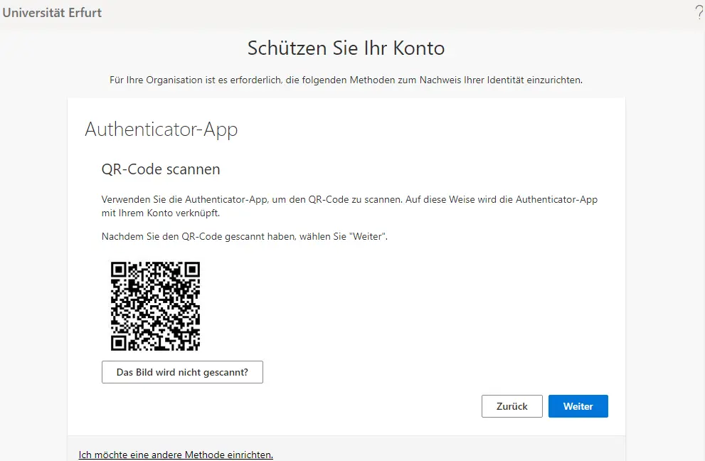 During the initial login, you will be prompted to set up measures for additional security (multi-factor authentication (MFA)). This is a second personal factor of authentication that is checked in addition to the authentication with email address and password. You can use the suggested Authenticator app from Microsoft Android iOS (see also FAQ) or any alternative Authenticator app such as the DSGVO compliant app "OpenOTP Token" Android iOS from the manufacturer RCDevs Security (see also FAQ).