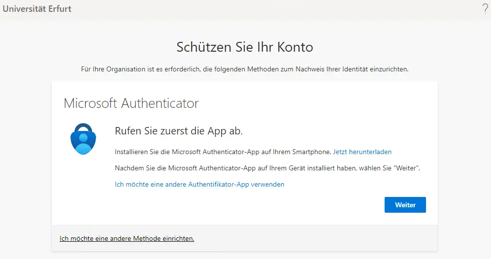 - If you are asked to enter additional information to protect your account after the M365 login (Figure 1), you will be offered the "Microsoft Authenticator" app directly for use in the next dialog (Figure 2). In addition to helpful information about the app, the "Download now" link also takes you to the download links for the two app stores Android iOS .