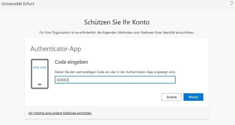 Instead of an app for the second factor, you can also specify a phone number, on which you then, depending on the selection, get a phone call or an SMS. These methods are possible, but not recommended. When using an app, there is a higher level of security.
