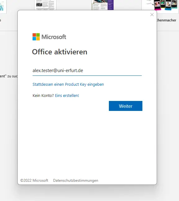 Use requires status as a student or employee of the University of Erfurt and registration with Microsoft.