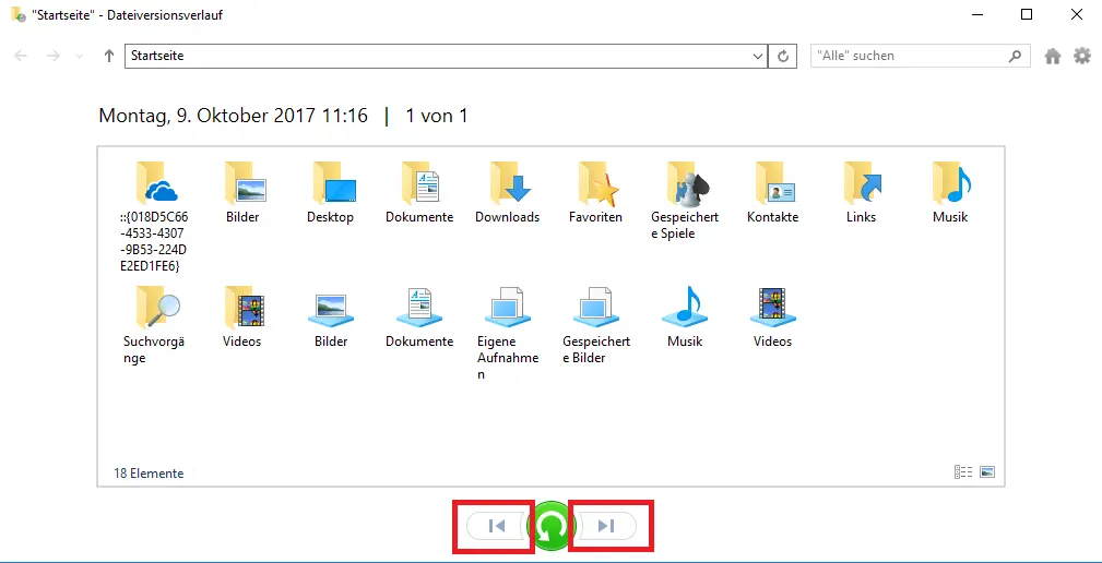 5. Über "Dateien von einer aktuellen Sicherung wiederherstellen" gelangen Sie in das Fenster des Dateiversionsverlaufs (Bild 4).