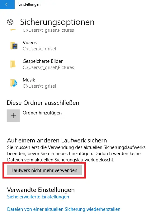 5. Über die Schaltfläche "Laufwerk nicht mehr verwenden" beenden Sie die Sicherung mit dem aktuellen Laufwerk (Bild 4).