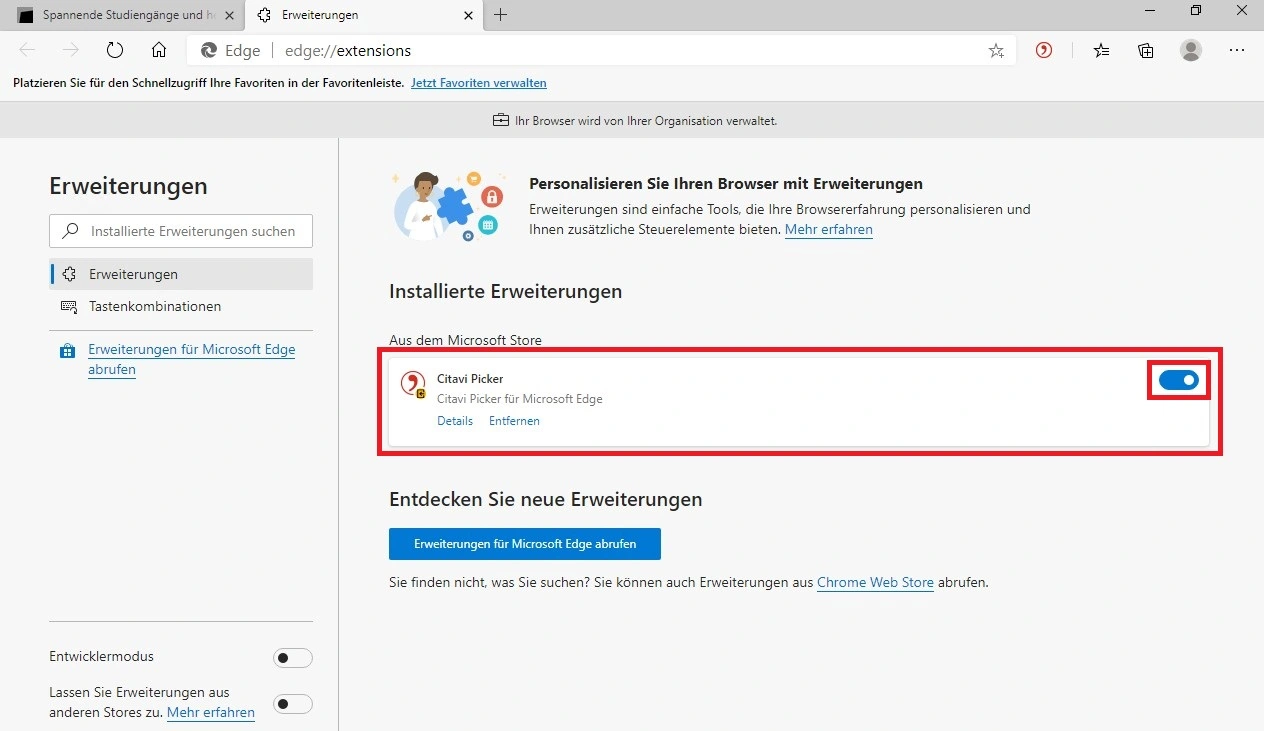 Nutzung des Citavi-Pickers im neuen Microsoft Edge