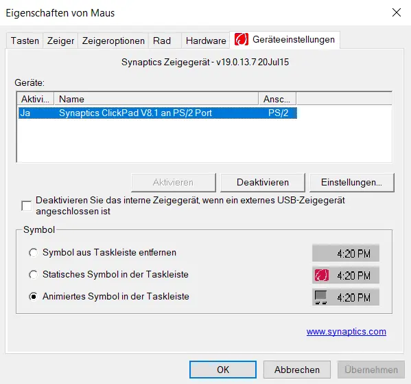 Bei der Verwendung einer USB-Maus bietet es sich an, generell das TouchPad zu deaktivieren.