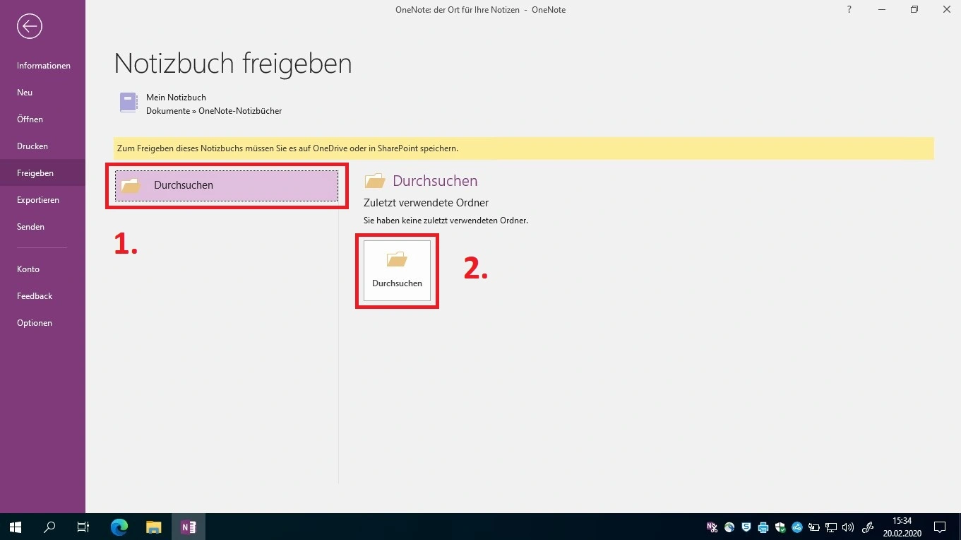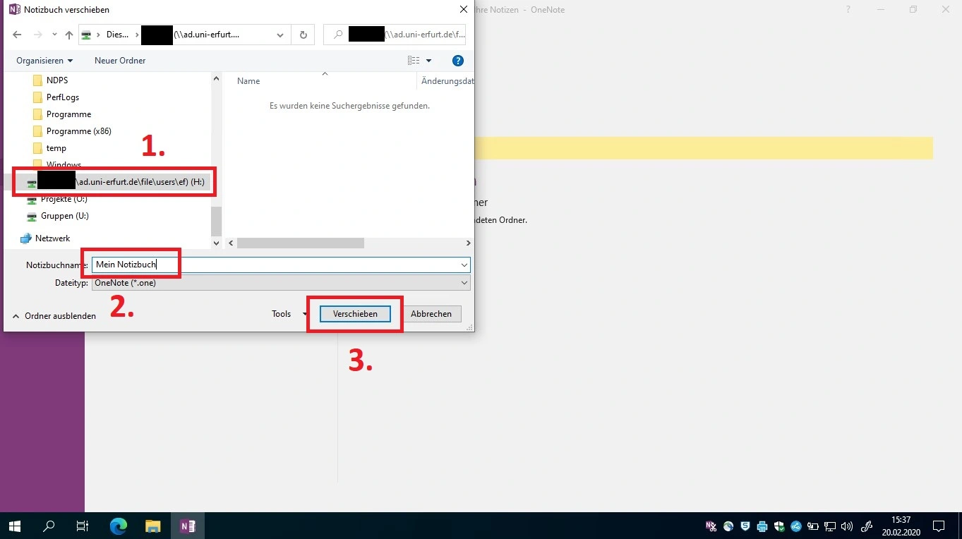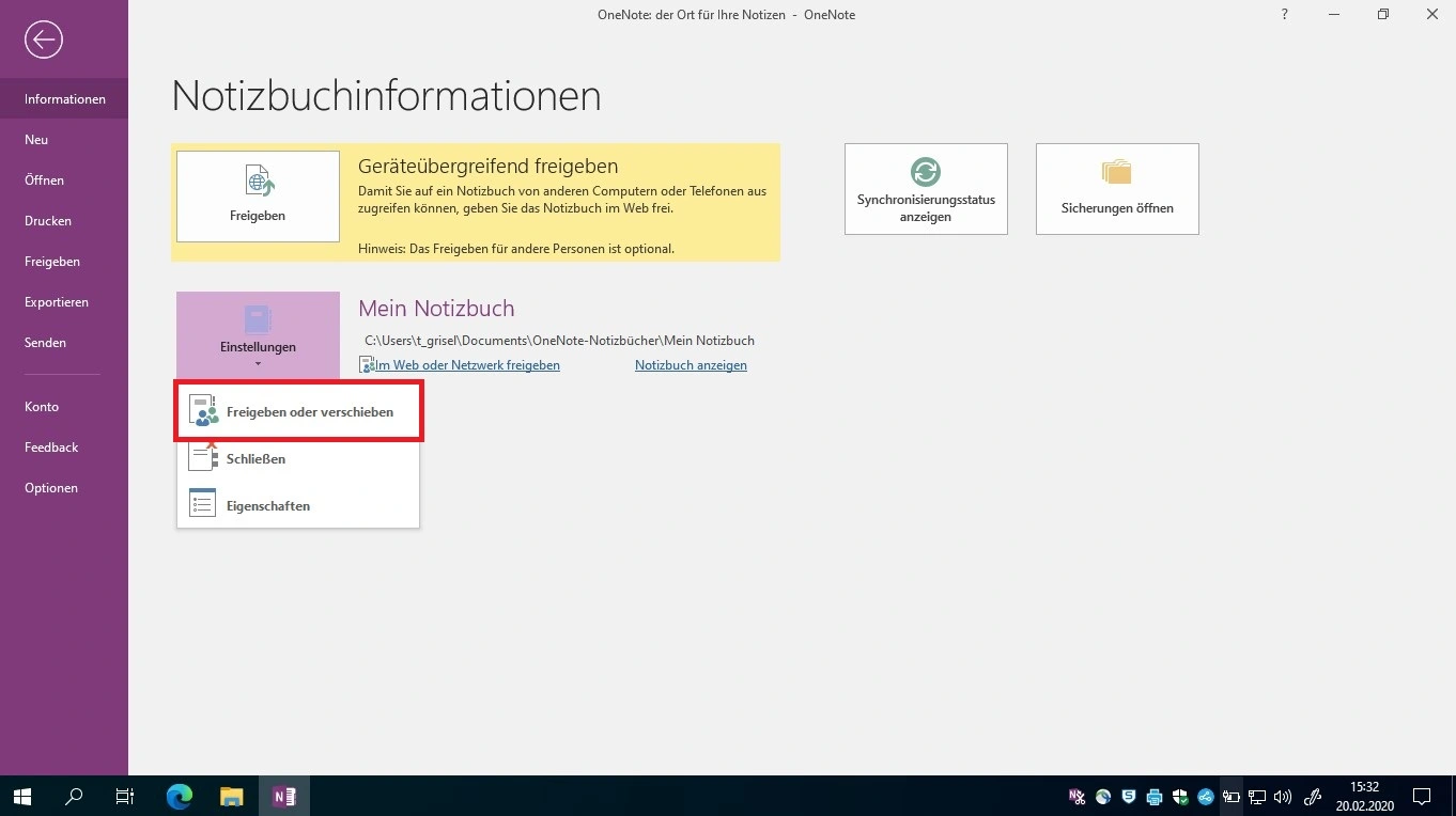 Wenn Sie lokale Notizbücher verwenden, denken Sie bitte daran, diese regelmäßig auf einem Netzlaufwerk oder einem externen Datenträger zu sichern. Unsere Empfehlung wäre, das Sie Ihr Notizbuch in Ihr Home-Directory (Netzlaufwerk H:) verschieben, da dort eine automatische Sicherung stattfindet.