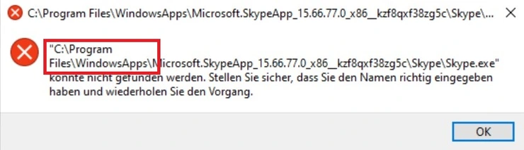 Fehlermeldung beim Starten von Apps wie bspw. Skype oder Kurznotizen