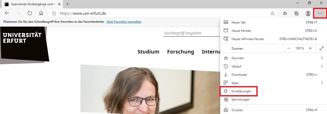 Ab Citavi Version 6.5 wird jetzt auch ein Picker für den neuen Microsoft Edge mit installiert. Dieser muss allerdings vor der Benutzung im Edge aktiviert werden. Dazu im Edge auf das drei Punkte Menü (...) klicken und "Erweiterungen" auswählen (Bild 1). Anschließend den Citavi Picker aktivieren (Bild 2 und 3).