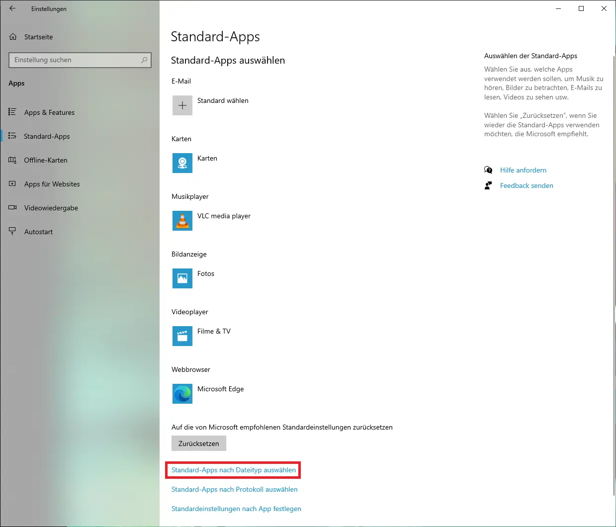 Um die zugewiesenen Standard-Apps bspw. für den Webbrowser, E-Mail oder die PDF-Anzeige zu ändern gehen Sie wie folgt vor:
