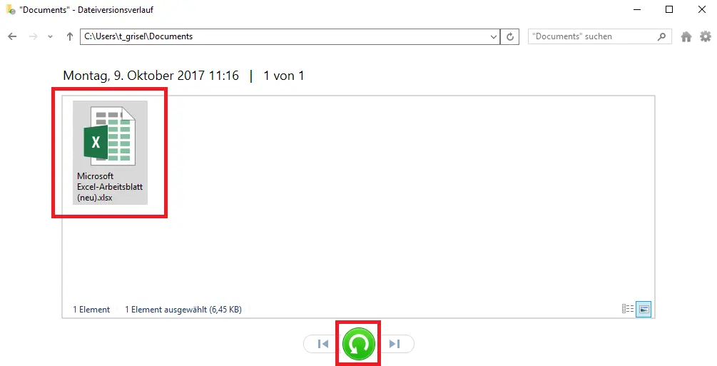 Wiederherstellen von Daten mit dem Dateiversionsverlauf