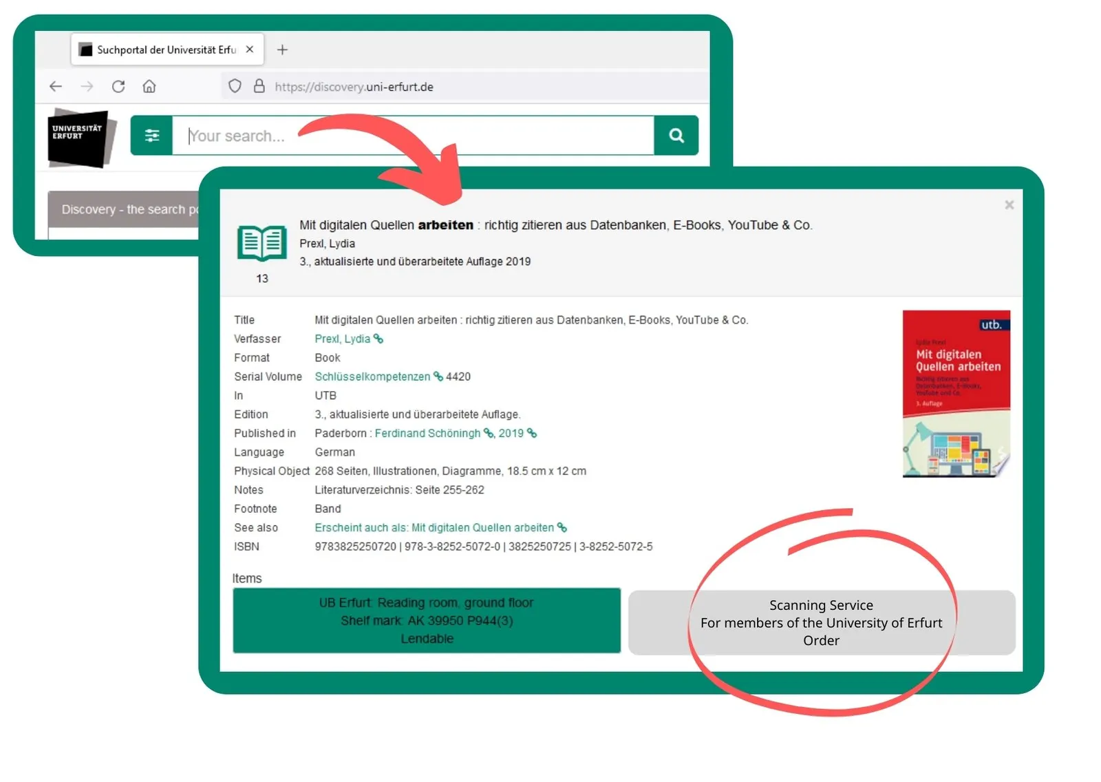 The delivery service includes the scanning and electronic provision of journal articles and book chapters (max. 10% for books, in compliance with copyright laws) from the holdings of Erfurt University Library.