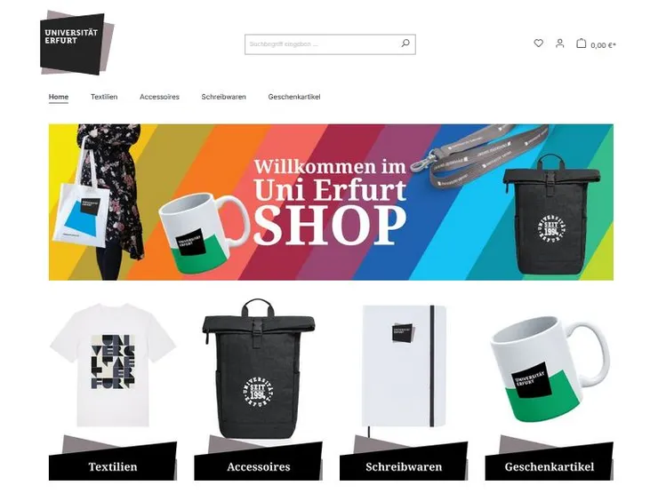 +++ Please note that with the launch of our new online store, it is no longer possible to purchase our merchandising products on campus! By the way: Staff of the University of Erfurt can also purchase on account after registering. +++