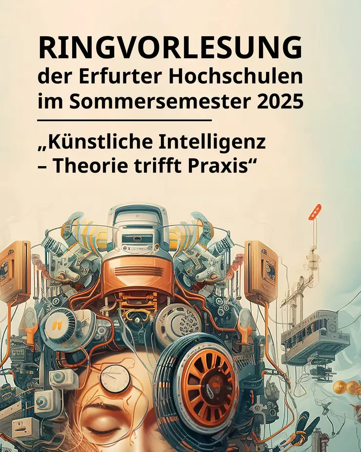 After the successful lecture series on the topic of “Artificial Intelligence”, to which the City of Erfurt and the Erfurt Universities of Applied Sciences invited people for the first time in the summer semester of 2024, the series was continued in 2025. On eight dates – each Tuesday from 6:15 to 7:45 p.m. in the Erfurt City Hall – speakers from the University of Erfurt, the International University of Cooperative Education (iba), the International University and the Health and Medical University will shed light on various aspects of artificial intelligence (AI) from different scientific perspectives.