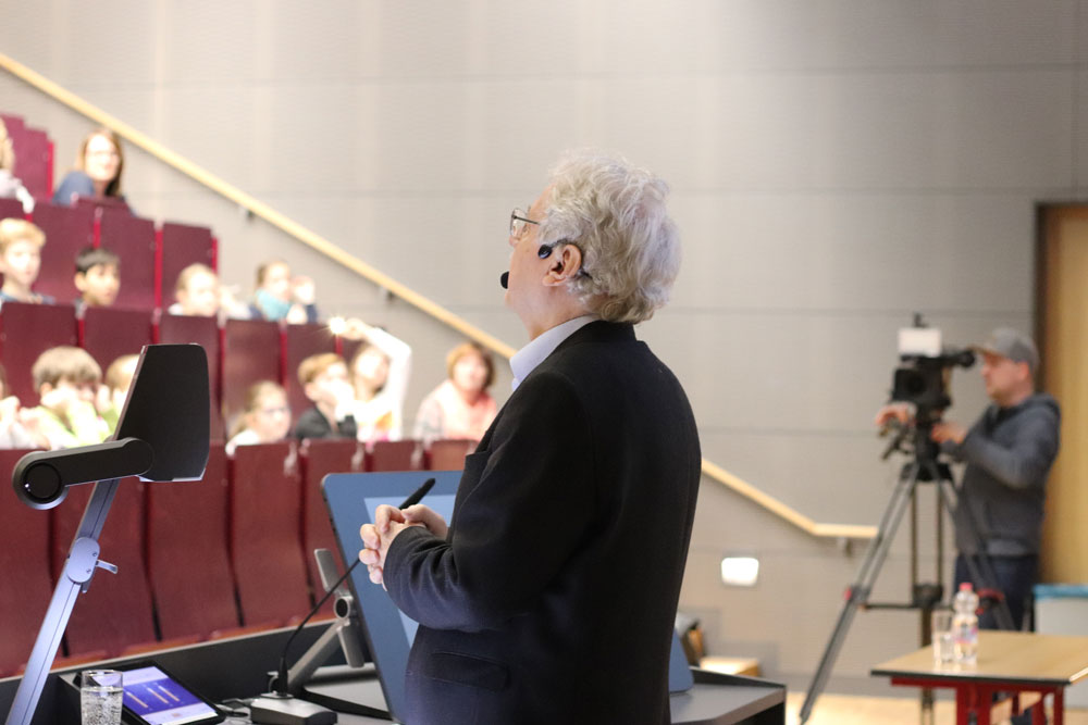 Darüber hinaus erzählte Maar, wie er überhaupt auf seine Ideen kommt und wie und wo er am liebsten schreibt. Viele Geschichten seien ihm beispielsweise auf Zugfahrten eingefallen. Vorzugsweise auf dem Land schreibt er dann die ersten zehn Seiten einer neuen Geschichte per Hand – erst dann fangen die Figuren im Kopf an zu „sprechen“. So erhielten die kleinen Zuschauer konkrete Einblicke ins „Autoren-Dasein“ und hatten zudem im Anschluss die Möglichkeit, die Bücher signieren zu lassen.