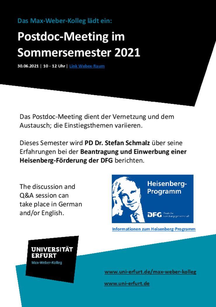 Introductory topic: Experiences in applying for and obtaining Heisenberg funding from the DFG - Stefan Schmalz reports.