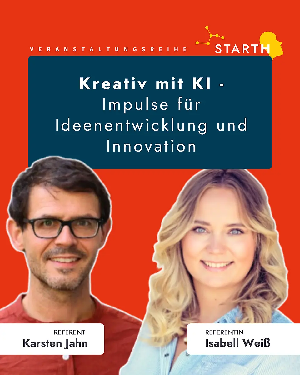 How does an initial idea develop into a viable innovation - and what role can artificial intelligence play in this? Our next StarTH Now workshop "From idea to innovation - AI as a creative partner" is dedicated to precisely these questions.