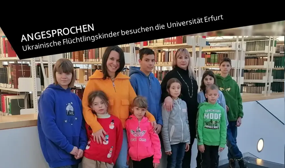 Eine Kindergruppe aus dem Erfurter Flüchtlingsheim besuchte die Universität Erfurt. Die Kinder staunten über die große Menge an Büchern in der mit Licht durchfluteten Bibliothek, den einladenden Campus mit Wohnheimen, Mensa und vielem mehr. Das Highlight der Kinder war der Besuch der Vorlesung von Dr. Renkewitz – die beeindruckende Atmosphäre im Hörsaal 2 hinterließ einen bleibenden Eindruck. Die Campusführung endete in den Räumen des ErfurtLabs, in denen ein schöner Nachmittag bei gemeinsamen Basteln und Gesprächen ausklang. Die Kinder waren sich einig – sie möchten gerne wiederkommen, vielleicht sogar als Studierende an der Universität Erfurt.