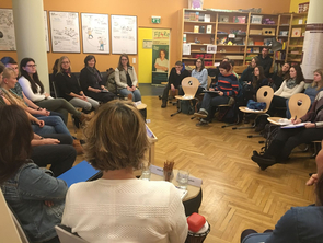Zusammen mit ihrer Dozentin, Dr. Barbara Müller-Naendrup, besuchte am 26. und 27. Januar 2018 eine Gruppe Studierender der „OASE“ Lernwerkstatt der Universität Siegen die Erfurter Hochschullernwerkstatt. Dies war Teil und zugleich Abschluss eines gemeinsamen Kooperationsseminars im Sachunterricht beider Hochschullernwerkstätten. Ziel des Besuchs war es, die gemeinsamen Projektideen, die sich aus der Schnittmenge von Inhalten aus Digitalisierung und Inklusion ergaben, fertigzustellen und zu präsentieren. So wurde beispielsweise über das Semester hinweg ein Konzept für eine LernAPP mit fertiger Simulation erstellt, ein Lehrfilm zum Thema „Integration“ gedreht, ein virtuelles Konzept für einen inklusiven Klassenraum entworfen sowie ein alternatives Konzept zur Leistungsbewertung erarbeitet. Ein Erfurter Student berichtet auf dem Blog "ich-mag-meine-uni" ausführlich über dieses Seminar.