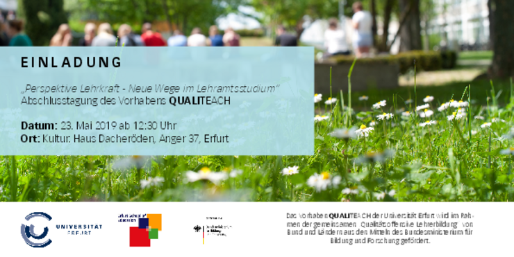 Seit 2016 wird das Vorhaben „Identität, Immersion, Inklusion – Eine integrierte Initiative zur nachhaltigen Qualitätsentwicklung der Erfurter Lehrerbildung (QUALITEACH)“ im Rahmen der gemeinsamen „Qualitätsoffensive Lehrerbildung“ von Bund und Ländern aus Mitteln des Bundesministeriums für Bildung und Forschung gefördert.