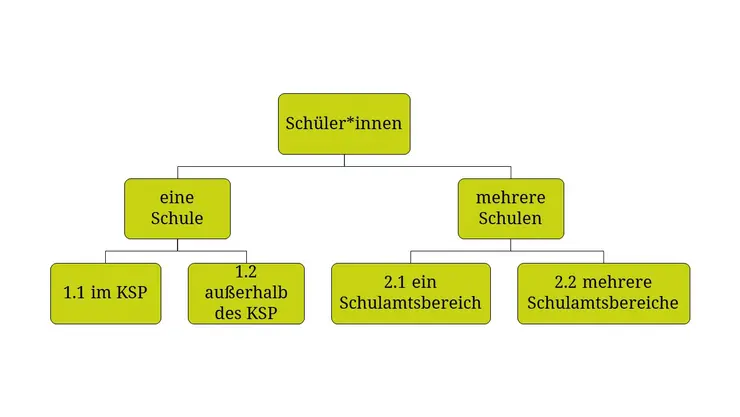 2.1 ein Schulamtsbereich: Genehmigung des zuständigen Schulamts, Zustimmung der Schulleitungen und Einverständniserklärung der Eltern (bei minderjährigen Schüler*innen); siehe Hinweisblatt 2