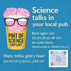 Dieses Format der Wissenschaftskommunikation hat vor allem den Austausch über wissenschaftliches Arbeiten zum Ziel, um Forschung und Wissenschaft etwas transparenter und leichter zugänglich zu machen, besonders auch für Menschen, die sonst damit wenig in Kontakt kommen. Der Abend bietet sowohl Inspiration durch kurze Impulsvorträge zu verschiedenen Forschungsprojekten sowie viel Raum für Fragen und Diskussionen.