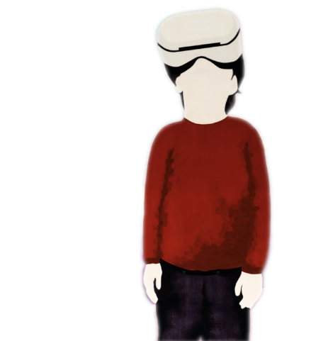 Die Arbeiten von Stefan Schiek wurden verfremdet, d.h. es wurde der farbige Hintergrund gelöscht und nur die Figuren stehen gelassen, so dass Kinder die Bilder ausdrucken und ihre eigenen VR-Visionen in das Bild hineinmalen können.