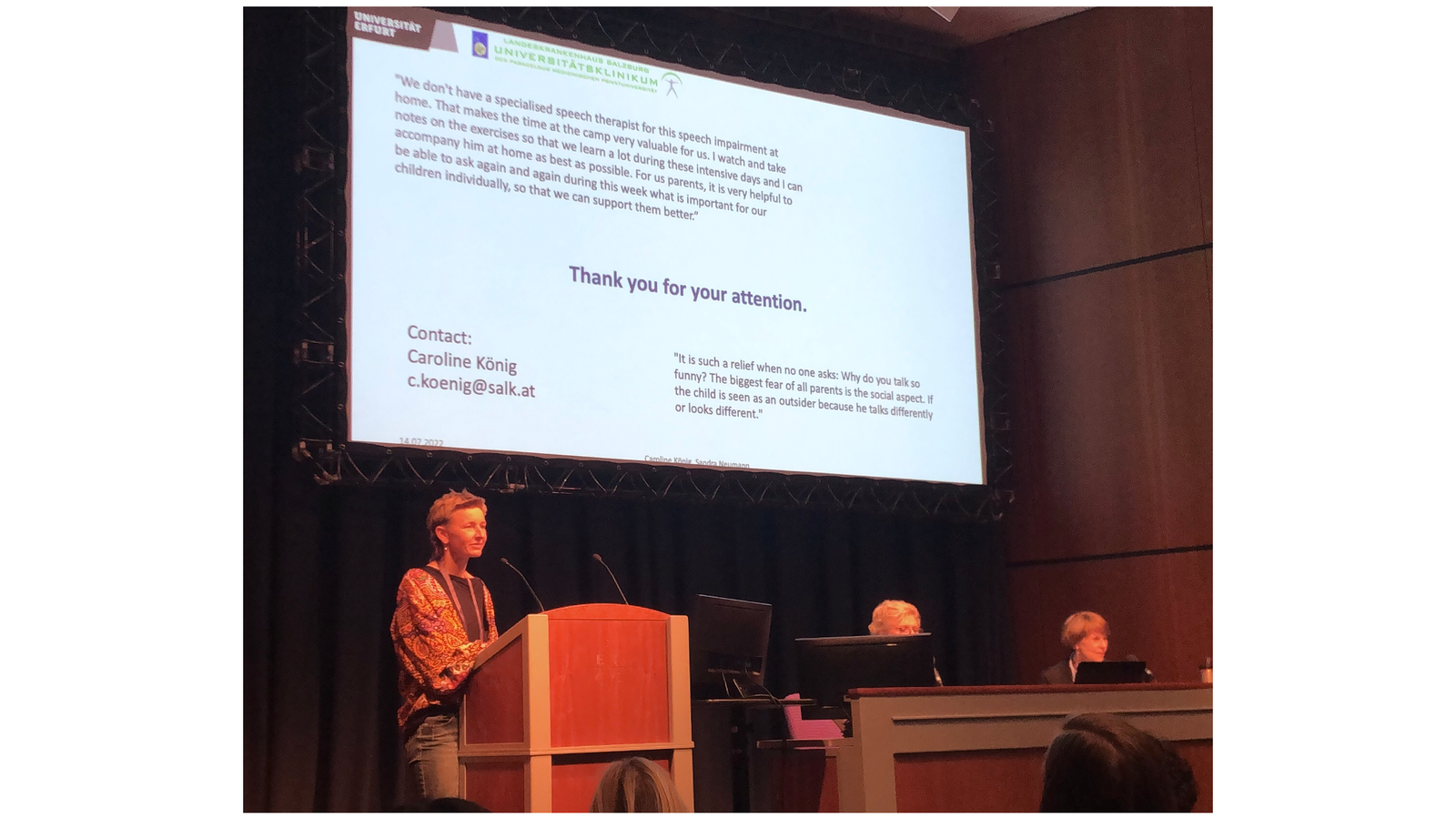Auf dem 14. Cleft Kongress in Edinburgh (Schottland) hielt Dr. Caroline König einen Vortrag zum Thema „Effectiveness of a 6-day intensive speech therapy camp“. Im Rahmen des Vortrages stellte sie die Ergebnisse ihres Dissertationsprojektes vor, diskutierte diese und begeisterte hiermit das internationale Publikum. Die Vernetzung mit anderen Forschenden sowie die Vorstellung neuester Forschungsergebnisse erlebte Dr. Caroline König beim Besuch des Weltkongresses als besonders wertvoll.