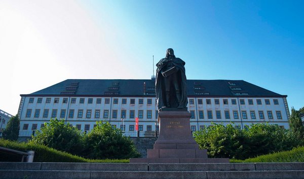 Übergroß ragt die dunkle Bronzestatur vor Schloss Friedenstein über die Gothaer Altstadt. Seit 1904 huldigen die Gothaer damit ihrem einstigen Herrscher über das Herzogtum Sachsen – Gotha – Altenburg.