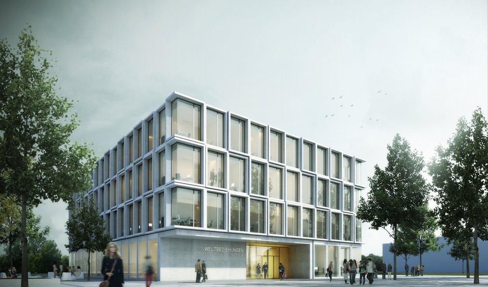 Die Jury war überzeugt: Der kompakte und zugleich großzügige Entwurf berücksichtige die geplanten Nutzungen und erfülle zugleich eine weitere Anforderung im Wettbewerb: Zwischen dem Neubau und der Bibliothek bleibt Raum für mögliche weitere Gebäude. „Der Neubau ist für uns eine wunderbare Chance, auf dem Campus noch näher zusammenzurücken“, freut sich Prof. Dr. Walter Bauer-Wabnegg, Präsident der Universität Erfurt. „Zugleich können wir den Wissenschaftlerinnen und Wissenschaftlern modernste Räume zum Arbeiten bieten, so dass der geplante Neubau nicht nur eine Bereicherung für den Campus, sondern auch ein wichtiger Schritt im harten Wettbewerb um Ressourcen und Köpfe sein wird.“