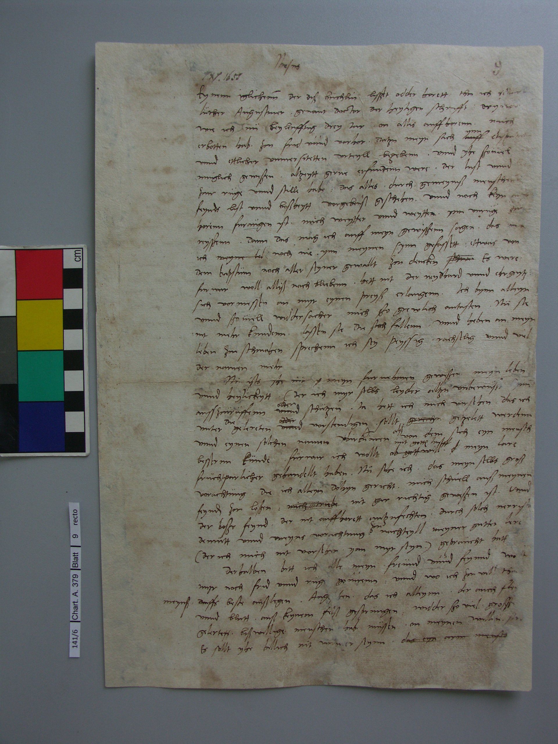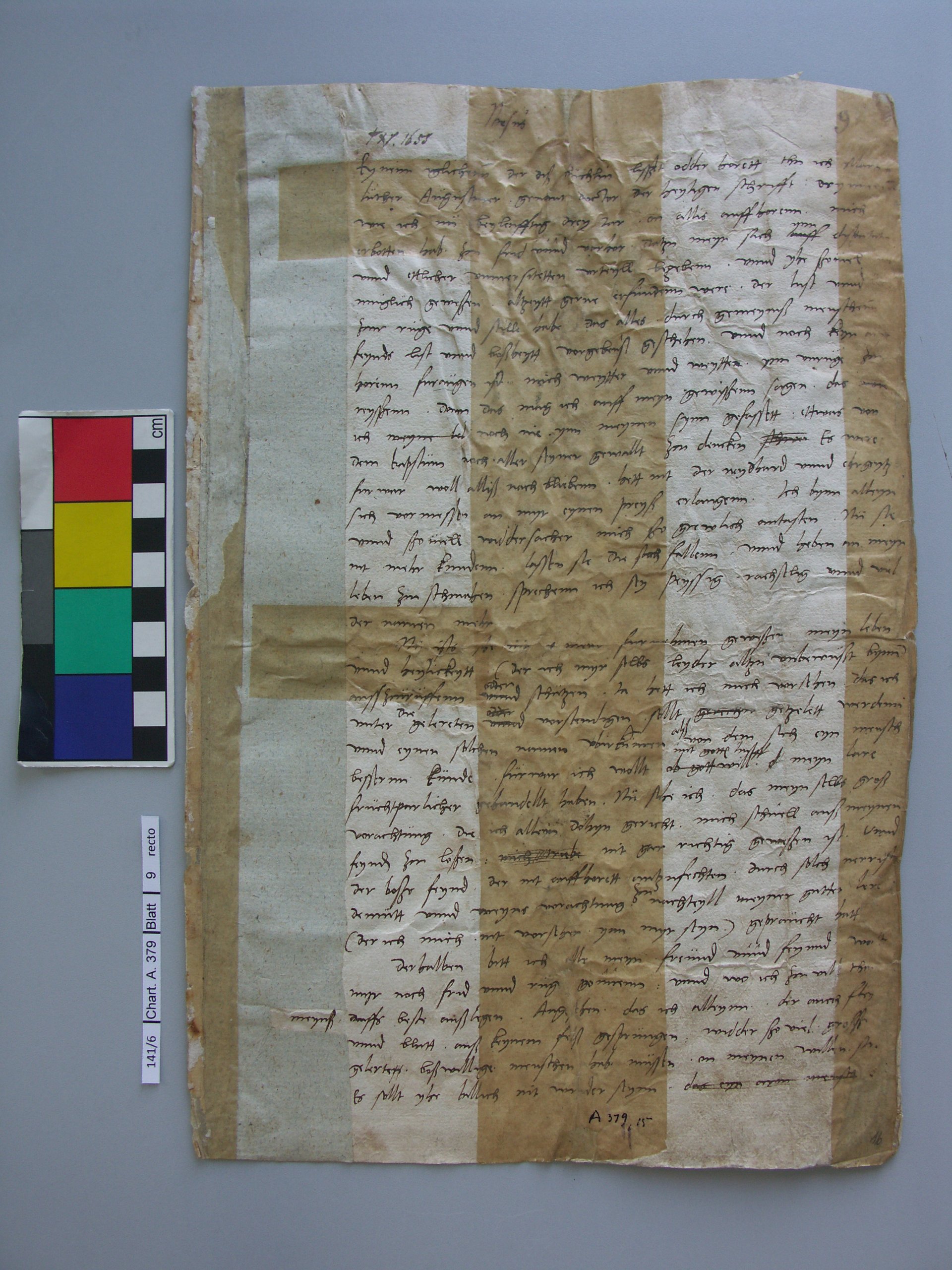 Der Brief des Reformators Martin Luther (1483–1546) war aufgrund eines nicht mehr zu datierenden Wasserschadens von Altschimmel befallen. Die Stabilität des Papiers hatte sich dadurch stark verschlechtert. Zahlreiche Überklebungen aus unterschiedlichen Papieren, die auf der linken Abbildung (vor der Restaurierung) gut zu erkennen sind, haben zusätzlich Verwerfungen und Spannungen hervorgerufen. Im Zuge der Restaurierung hat der Restaurator die alten Überklebungen mit Hilfe von Gelkompressen abgenommen. Fehlstellen und instabile Papierbereiche hat er mit diversen Japanpapieren ergänzt und stabilisiert (rechte Abbildung). Anschließend wurde der Brief, der Teil eines Bandes aus der Autographen-Sammlung Herzog Friedrichs II. von Sachsen-Gotha-Altenburg war, als einzelnes Dokument in eine eigens dafür und für weitere Briefe gefertigten Mappe eingelegt. So kann der Brief einzeln für Forschungsfragen oder für Ausstellungs- und Digitalisierungszwecke entnommen werden.