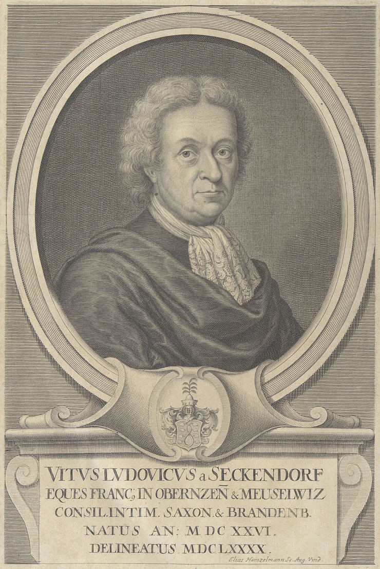 Der Gelehrte und Staatsmann Veit Ludwig von Seckendorff gilt als einer der wichtigsten Exponenten der europäischen Gelehrtenrepublik zwischen Dreißigjährigem Krieg, Pietismus und beginnender Aufklärung. Er wird als Begründer der modernen, wissenschaftlich fundierten Verwaltungslehre angesehen und zählt zu den bedeutendsten Vertretern der christlichen Staatstheorie sowie der protestantischen Kirchengeschichte. Nach einer steilen Karriere in den Diensten des Herzogs Ernst von Sachsen-Gotha wechselte er an die Verwaltungsspitze des Fürstentums Sachsen-Zeitz. Kurz vor seinem Tod wurde er zum Gründungskanzler der Universität Halle ernannt. In seinem wissenschaftlichen Werk suchte Seckendorff die Verbindung zwischen Geschichte, Philosophie und Politik zum Natur- und Völkerrecht. Unter der Vielzahl seiner Schriften ragen der publizistisch äußerst erfolgreiche „Teutsche Fürstenstaat“ von 1656 sowie der „Commentarius de Lutheranismo“ von 1688 (erweitert 1692) heraus.