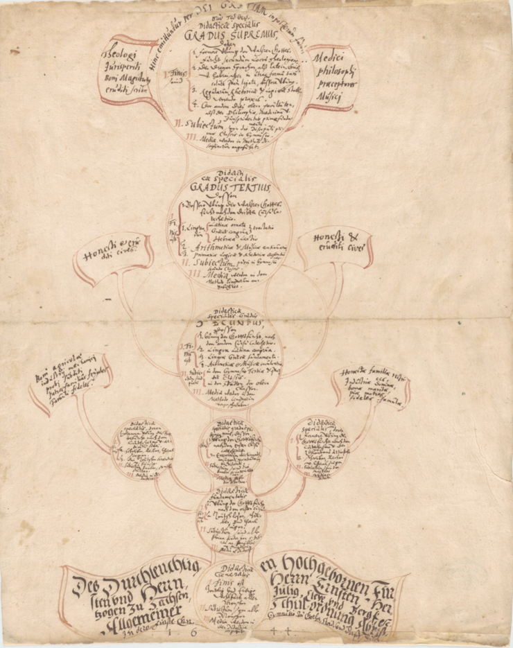 Die Bestände der Forschungsbibliothek Gotha und der Friedenstein Stiftung Gotha gehen auf die durch Herzog Ernst I. noch während des Dreißigjährigen Krieges zielstrebig begonnene Sammlungstätigkeit des Herzoghauses Sachsen-Gotha zurück. Zu diesen Sammlungen gehörten von Beginn an auch ausdrücklich bildungsgeschichtliche Bestände. So bewahrt die Forschungsbibliothek unter ihren frühneuzeitlichen Beständen rund ein Viertel bildungsgeschichtlicher Quellen im engeren und weiten Sinne. Hervorzuheben sind vor allem die Nachlässe bedeutender Pädagogen wie Wolfgang Ratke (1571–1635) und Andreas Reyher (1601–1673). In den Sammlungen der Friedenstein Stiftung Gotha spiegeln die Objekte der für Schulzwecke verwendeten fürstlichen Kunst- und Naturalienkammer die außerordentlich frühe Förderung der Naturlehre und anderer „Realien“ wider. Besonders wichtig sind auch die handschriftlichen Dokumente des Gelehrten Veit Ludwig von Seckendorff (1612–1692), der zwischen 1645 und 1664 im Dienst des Herzogs stand und als Ideengeber und Organisator der Gothaer Reformen von Staat, Gesellschaft und Bildungswesen eine entscheidende Rolle spielte. Diese Dokumente erschließt die Forschungsbibliothek seit 2020 im Rahmen eines von der Deutschen Forschungsgemeinschaft geförderten Projekts. Singulär überliefert sind daneben handschriftliche Dokumente zum Gothaer Gymnasium, an dem Seckendorff und August Hermann Francke (1663–1727) ausgebildet wurden. Dazu zählen neben Lehrplänen, Unterrichtskonzepten, Schülermatrikeln und Korrespondenzen auch die nach dem Zweiten Weltkrieg in die Forschungsbibliothek integrierte, etwa 50.000 Bände umfassende Bibliothek des Gymnasiums.