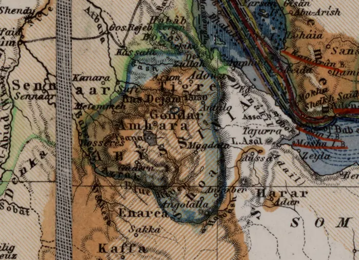 Bild: Abessinien, Ausschnitt aus: Hermann Berghaus, Chart of the World, 6. Auflage, Gotha: Justus Perthes 1871 © Forschungsbibliothek Gotha der Universität Erfurt.