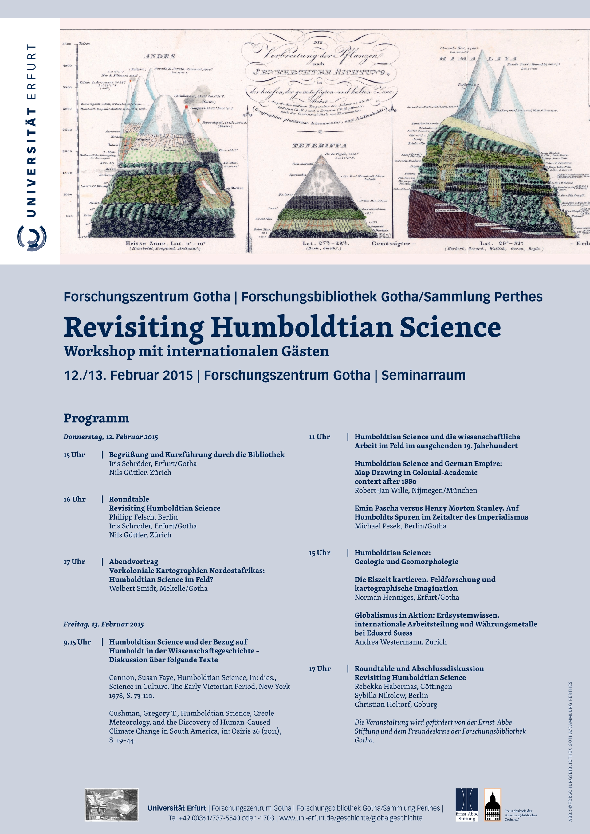 Am 12./13. Februar 2015 fand im Seminarraum des Forschungszentrums Gotha der Workshop “Revisiting Humboldtian Science” statt.