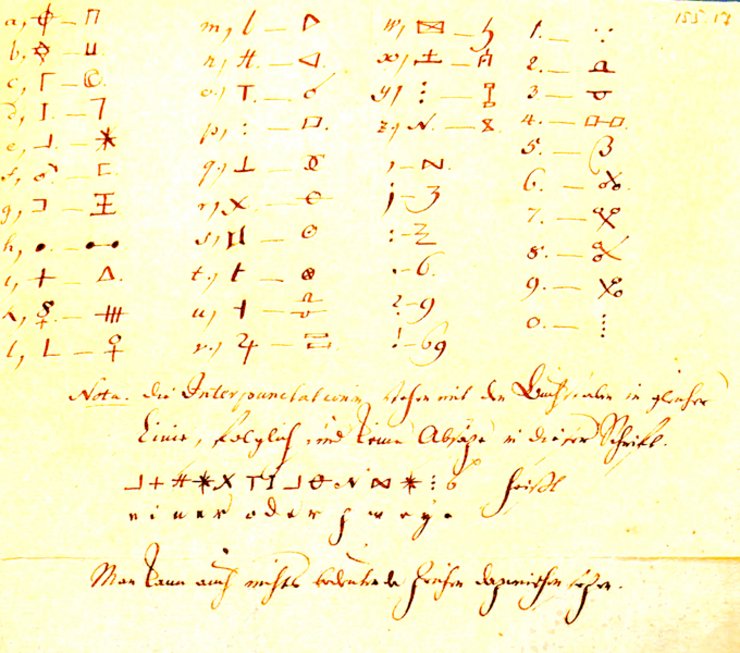 Bild: J. J. Chr. Bodes Kopie der Illuminatischen "Geheimchiffre", <Skåp 9A 155.17> beigesteuert von Josef Wäges.