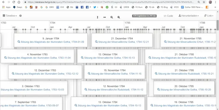 Bild: Die Treffen der Thüringer Illuminaten, FactGrid Timeline.