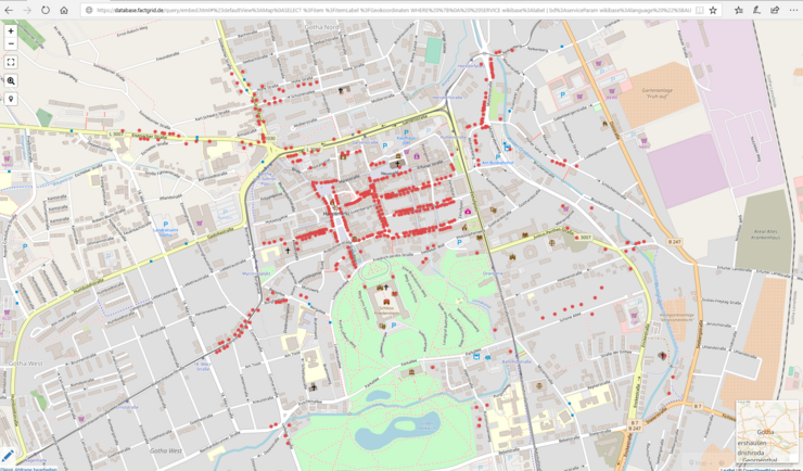 Bild: Georeferenzierte Gothaer Adressen, Darstellung auf dem Stadtplan