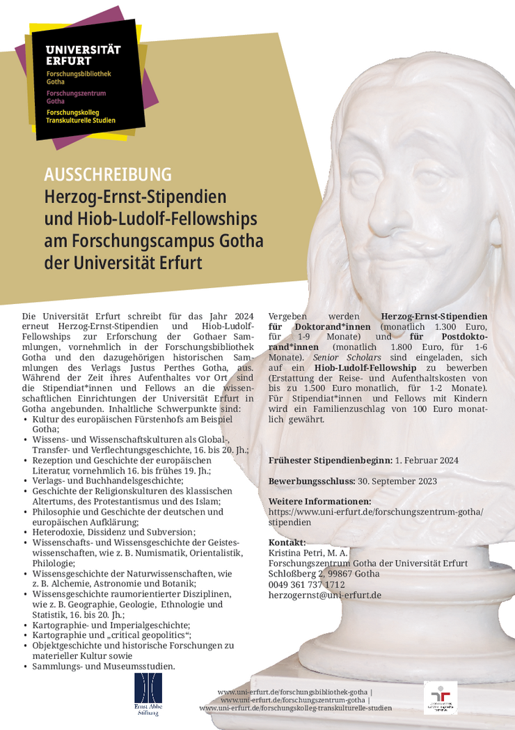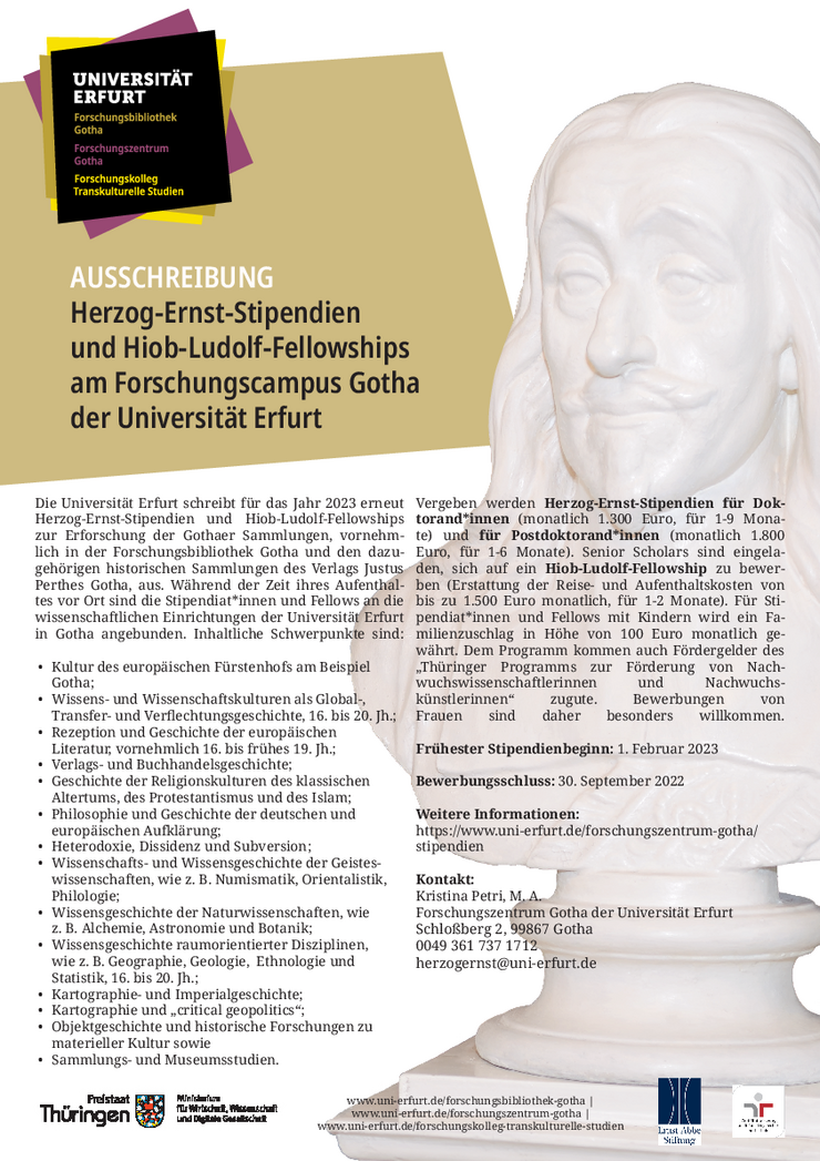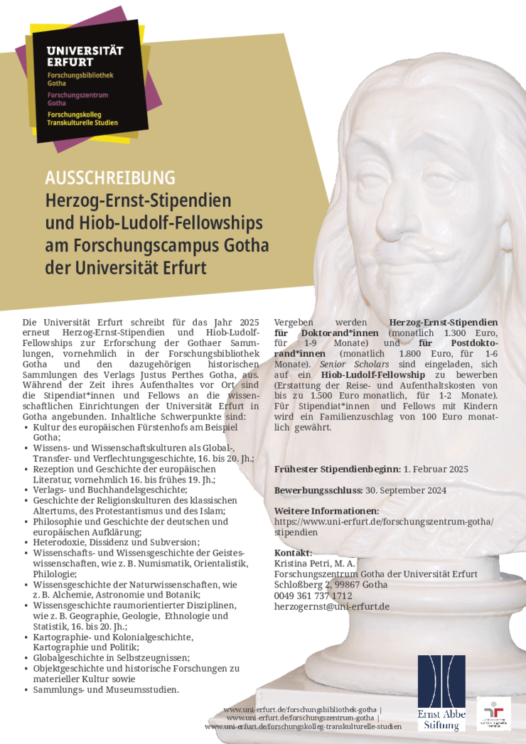 Für die wissenschaftliche Beschäftigung mit den Gothaer Beständen werden die folgenden Stipendien vergeben: