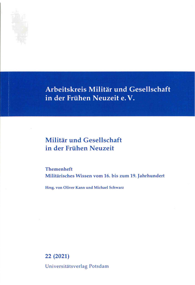 Einleitung: Militärisches Wissen vom 16. bis zum 19. Jahrhundert, in: Michael Schwarz, Oliver Kann (Hrsg.): Militär und Gesellschaft in der Frühen Neuzeit. Themenheft: Militärisches Wissen vom 16. bis zum 19. Jahrhundert, Potsdam 2021, S. 5-16.