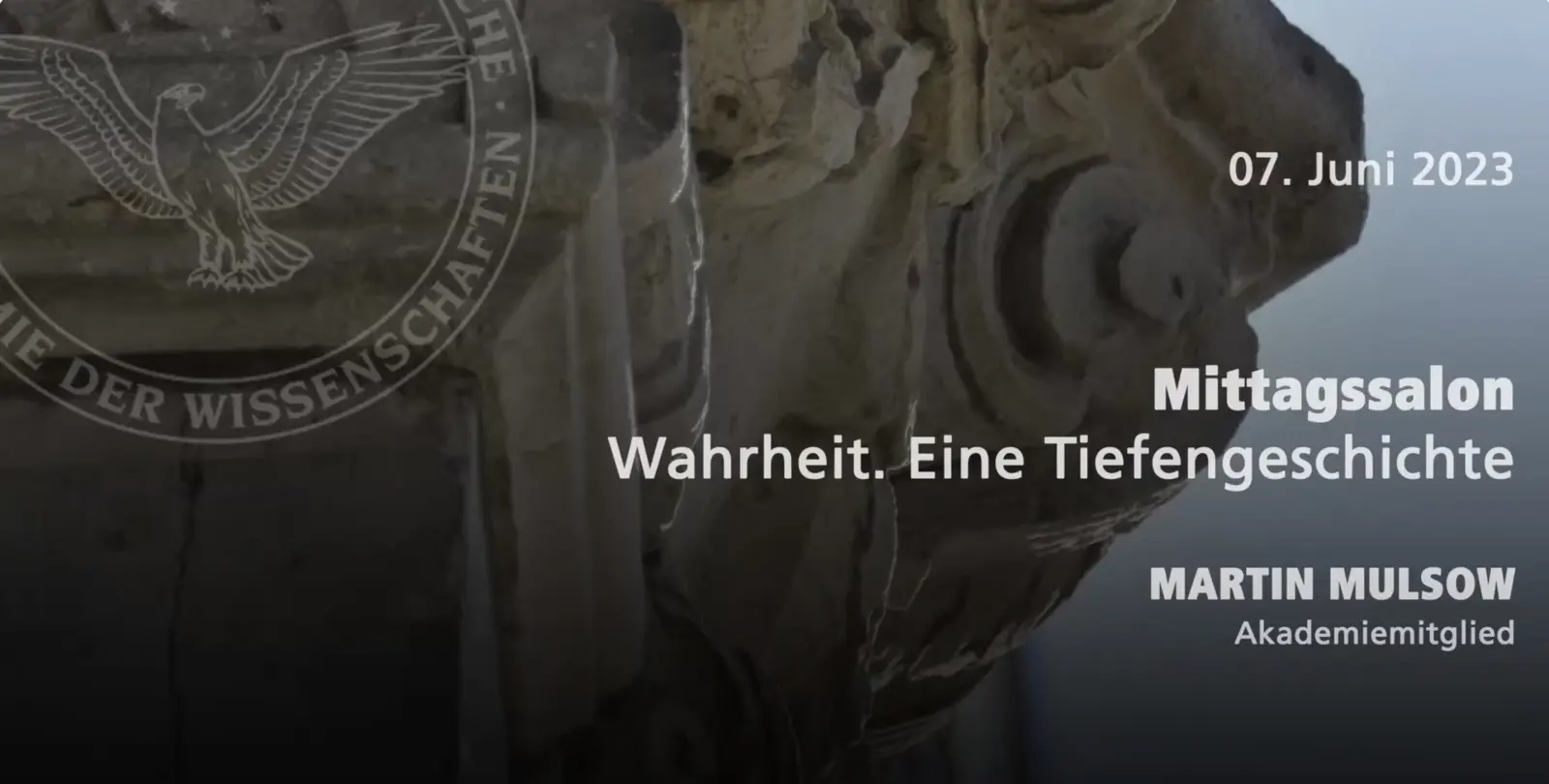Vortrag "Wahrheit. Eine Tiefengeschichte" von Martin Mulsow in der Berlin-Brandenburgischen Akademie der Wissenschaften, 7. Juni 2023