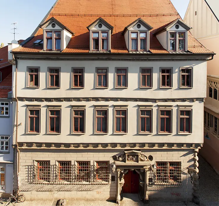 Das Internationale Begegnungszentrum der Universität Erfurt bietet vorrangig ausländischen und bei Verfügbarkeit auch deutschen Gastwissenschaftlern und ihren Familien während ihres Forschungsaufenthaltes in Erfurt ein Zuhause auf Zeit. Mitten in der Erfurter Altstadt gelegen, bietet das IBZ einen zentralen Standort in geschichtsträchtiger Umgebung. Gern heißen wir auch Sie in unserem Gästehaus willkommen und prüfen für Sie die Verfügbarkeit einer passenden Wohnung.