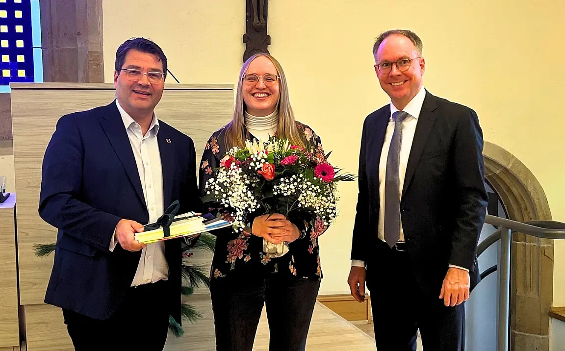 In ihrer Masterarbeit „Katholiken in der Nationalen Volksarmee – Zwischen Rosen- und Ährenkranz“ untersucht Weronika Vogel (Studiengang Theologie und Wirtschaft) die Situation von Katholiken im Grundwehrdienst der Nationalen Volksarmee und stellt die Frage, ob diese zwischen Rosen- und Ährenkranz innerlich zerrissen gewesen sind. Mit ihren Befunden bereichere Vogel die Wissenschaft und die Reflexionsmöglichkeiten über das Selbstverständnis des Katholischseins zu DDR-Zeiten, erklärte Prof. Dr. Jörg Seiler in seiner Laudatio, die von Tobias Hohenberger, Vorstand des Freundeskreises der Katholisch-Theologischen Fakultät, verlesen wurde. Der jährlich vergebene Förderpreis für die beste Abschlussarbeit ist mit 500 Euro dotiert und wurde auch in diesem Jahr vom Freundeskreis der Katholisch-Theologischen Fakultät gestiftet.
