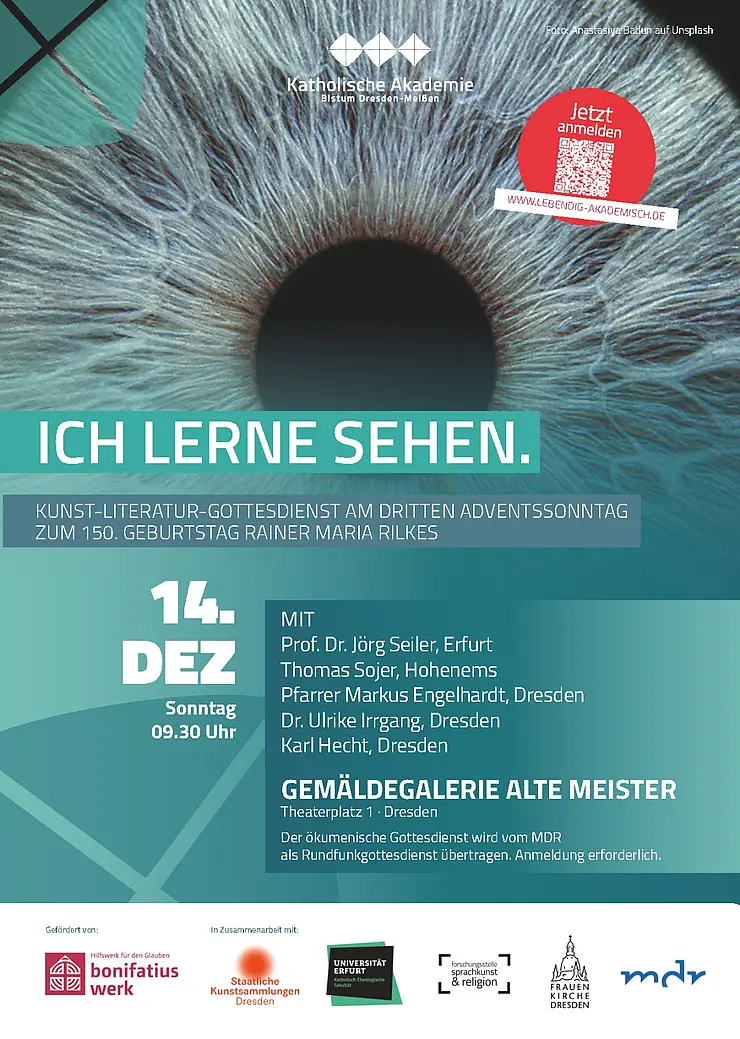 Der Gottesdienst rückt zwei oft übersehene Aspekte Rainer Maria Rilkes ins Licht. Rilke wählt Dresden als einen stillen Rückkehrort – weniger schillernd als Prag, Paris oder Venedig, aber voller Bedeutung. Die Alten Meister ziehen ihn immer wieder in die Stadt. Zugleich findet Rilke, der sich keinem religiösen Bekenntnis zugehörig sieht, im aufmerksamen Sehen auf die Welt eine beinahe religiöse Tiefe. In der Gemäldegalerie Alte Meister verbinden sich beide Linien: seine Liebe zu Dresden und die religiöse Erfahrung, die Rilke im eindrücklichen Blickkontakt gewinnt.