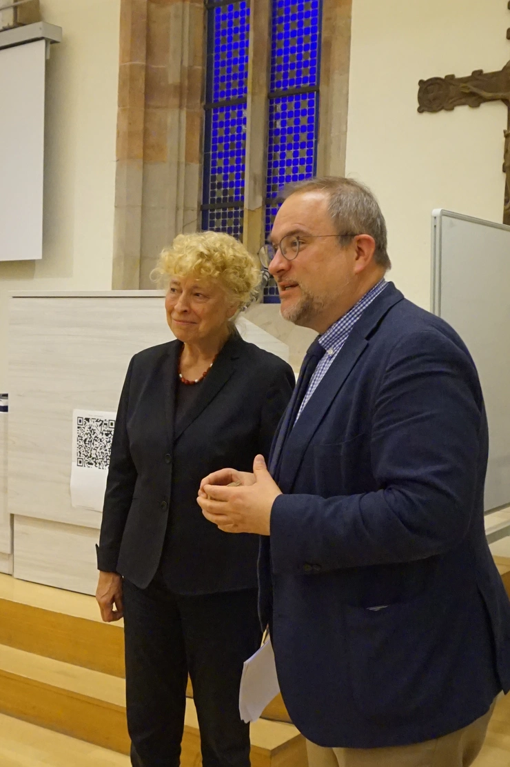 Die diesjährigen Kreuzganggespräche sind der großen und komplexen Frage nach Gott gewidmet. An jedem der drei Abende wird diese Fragestellung unter einem anderen Aspekt beleuchtet. Den Anfang machte am 04. Mai die Politikwissenschaftlerin und Politikerin Gesine Schwan mit einem Vortrag über den „politischen Gott“. Inwieweit sind christlicher Glaube und politisches Engagement miteinander verbunden und welche Rolle spielen christliche Werte in der Politik? Diese beiden zentralen Leitfragen zogen sich durch Schwans Vortrag und wurden an den konkreten Beispielen des Kriegs in der Ukraine und des Einsatzes für die Demokratie näher erläutert.