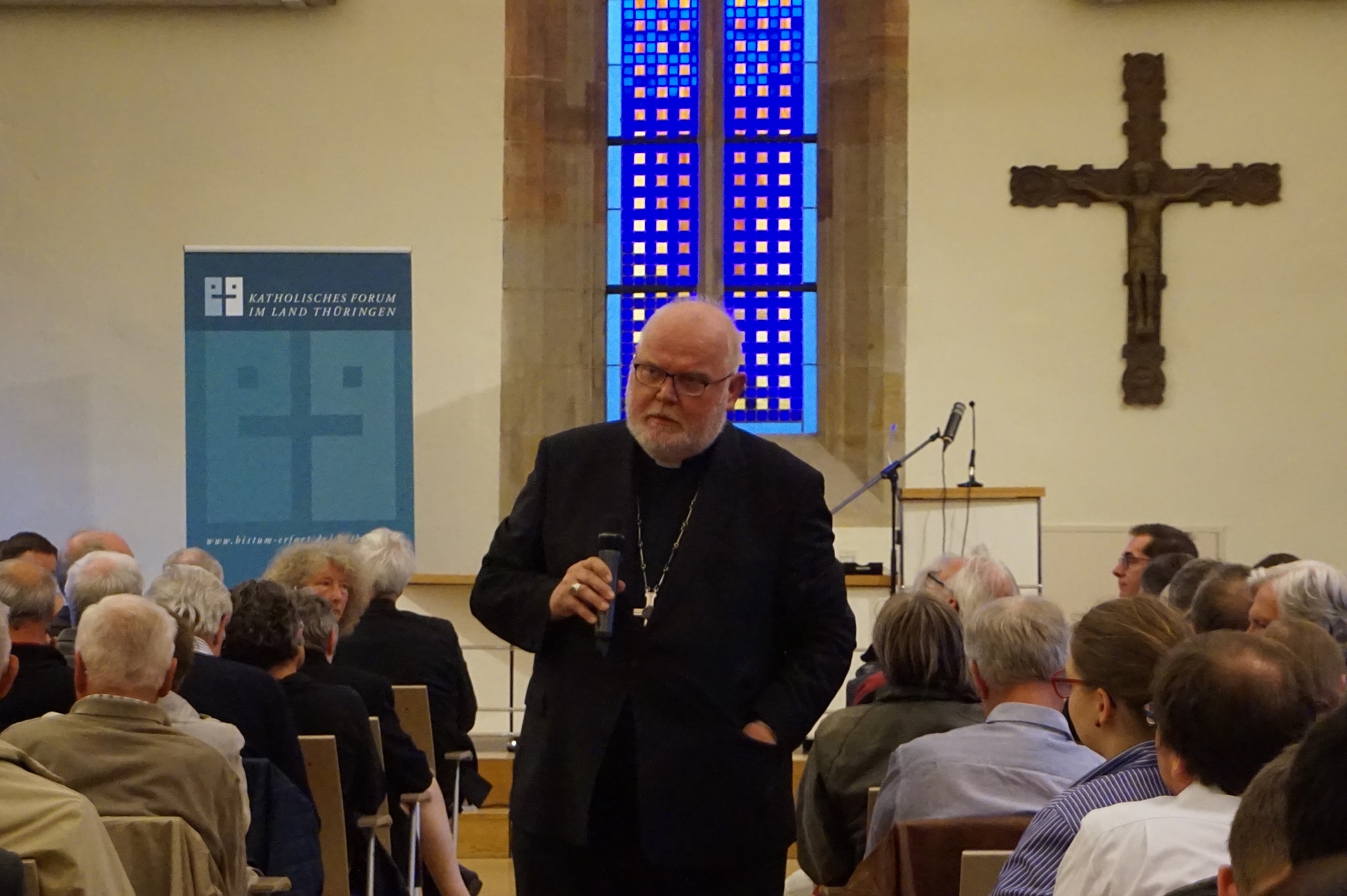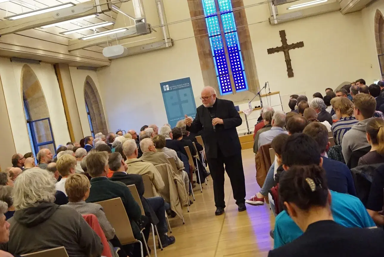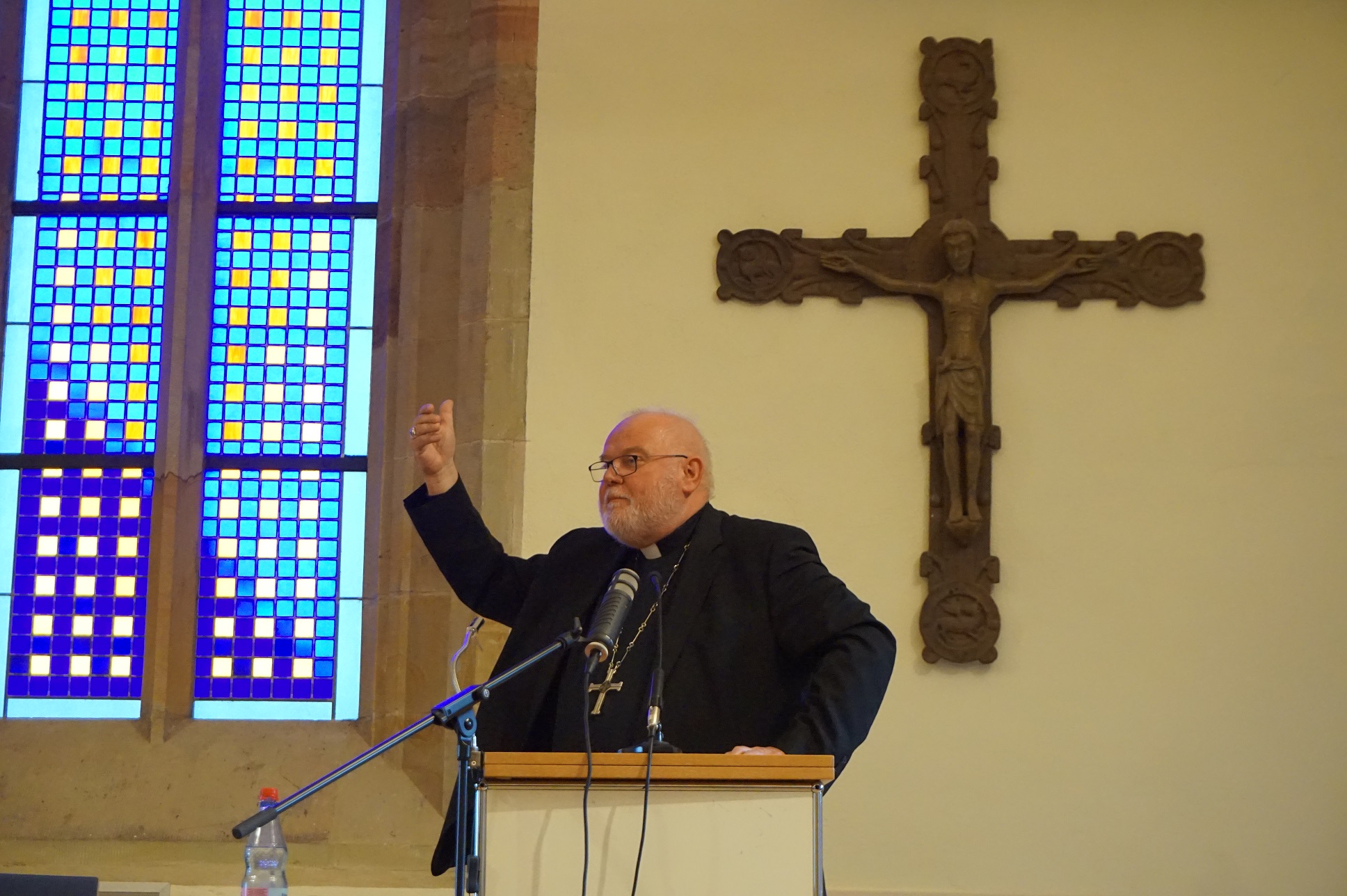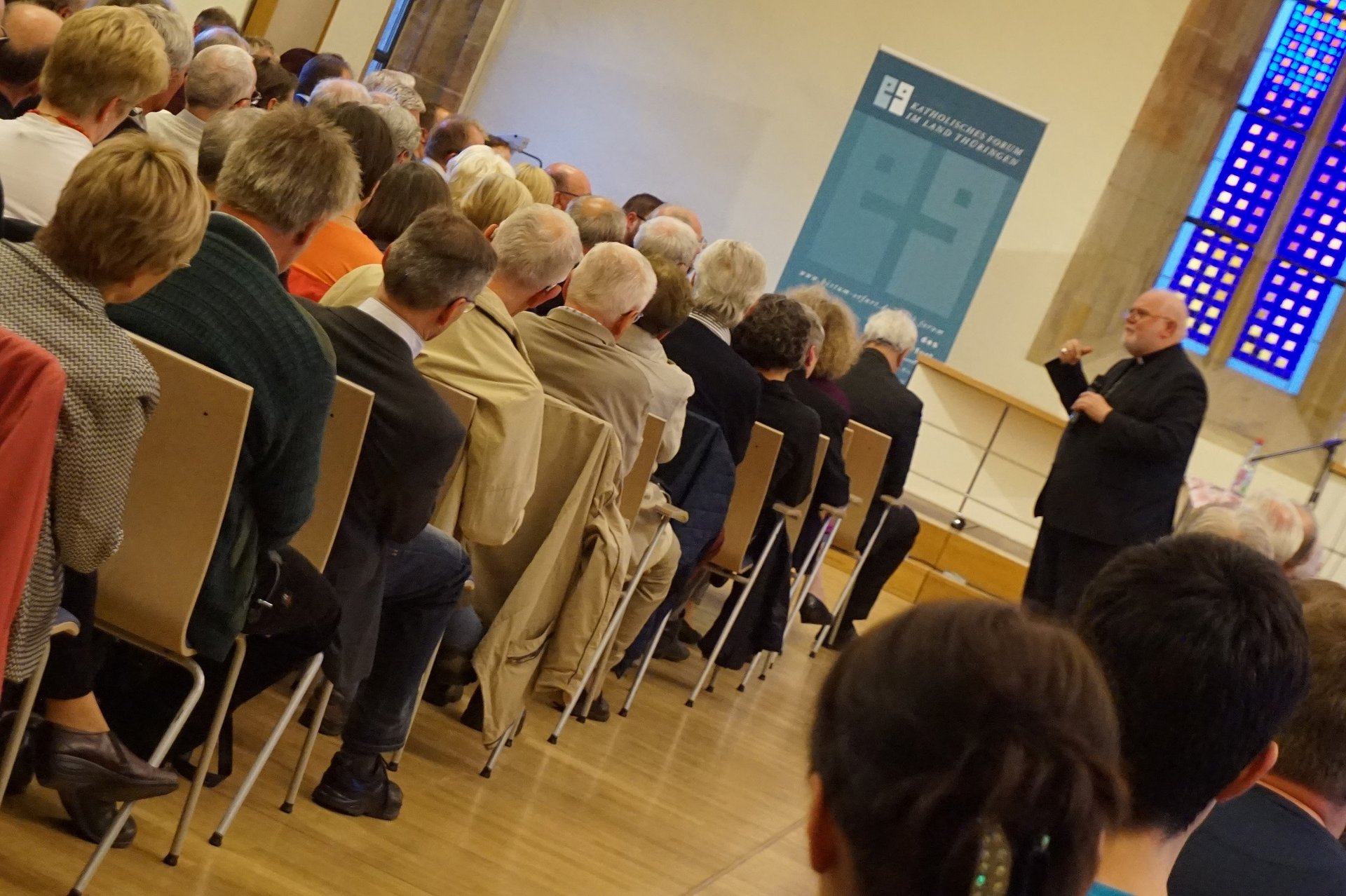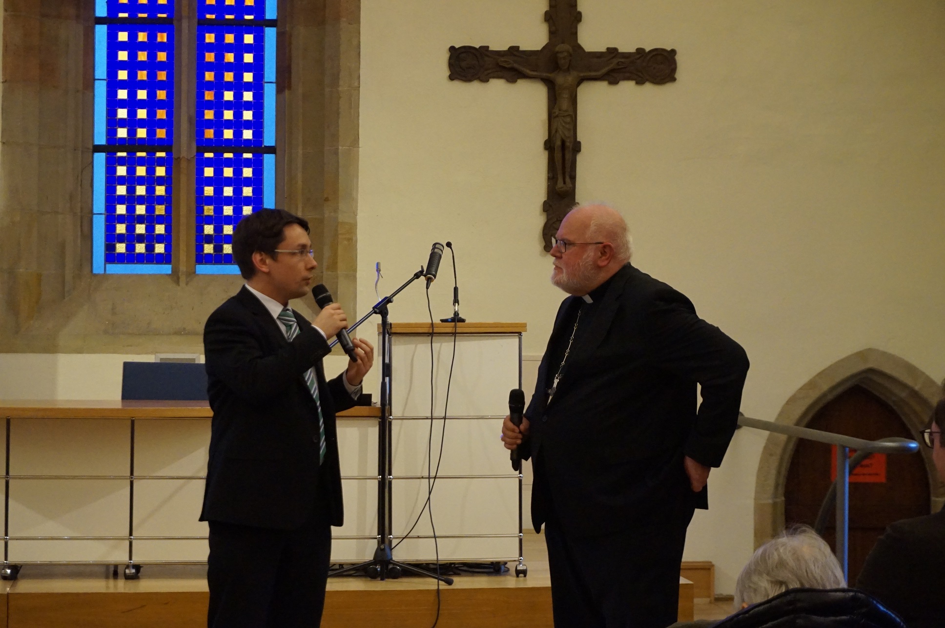 Entlang der Frage des Abends, “Was können die Kirchen dem Staat anbieten?”, erklärte der Erzbischof, dass eine Trennung von Staat und Kirche niemals aseptisch rein sein könne: hier der Staat, dort die Kirche. Dennoch sei eine gedankliche Trennung notwendig – schon deswegen, damit der Staat Gott nicht instrumentalisieren und ihn “zu einem benutzbaren Gegenstand” im Dienst der eigenen Interessen machen könne. Auch forderte Marx den Staat dazu auf, in seiner weltanschaulichen Haltung “neutral, aber nicht indifferent” zu sein. Stattdessen läge die aktive Förderung religiöser Gemeinschaften im Interesse der Demokratie, denn “der Bürger soll eine Vielfalt weltanschaulicher Möglichkeiten haben, um sich zu entscheiden.” Gleichwohl sei in dieser Freiheit das individuelle Handeln und die eigene Positionierung aktiv gefordert, weswegen der Geistliche abschließend an seine knapp 250 Zuhörerinnen und Zuhörer appellierte: “Entscheide dich und tu’ etwas!”