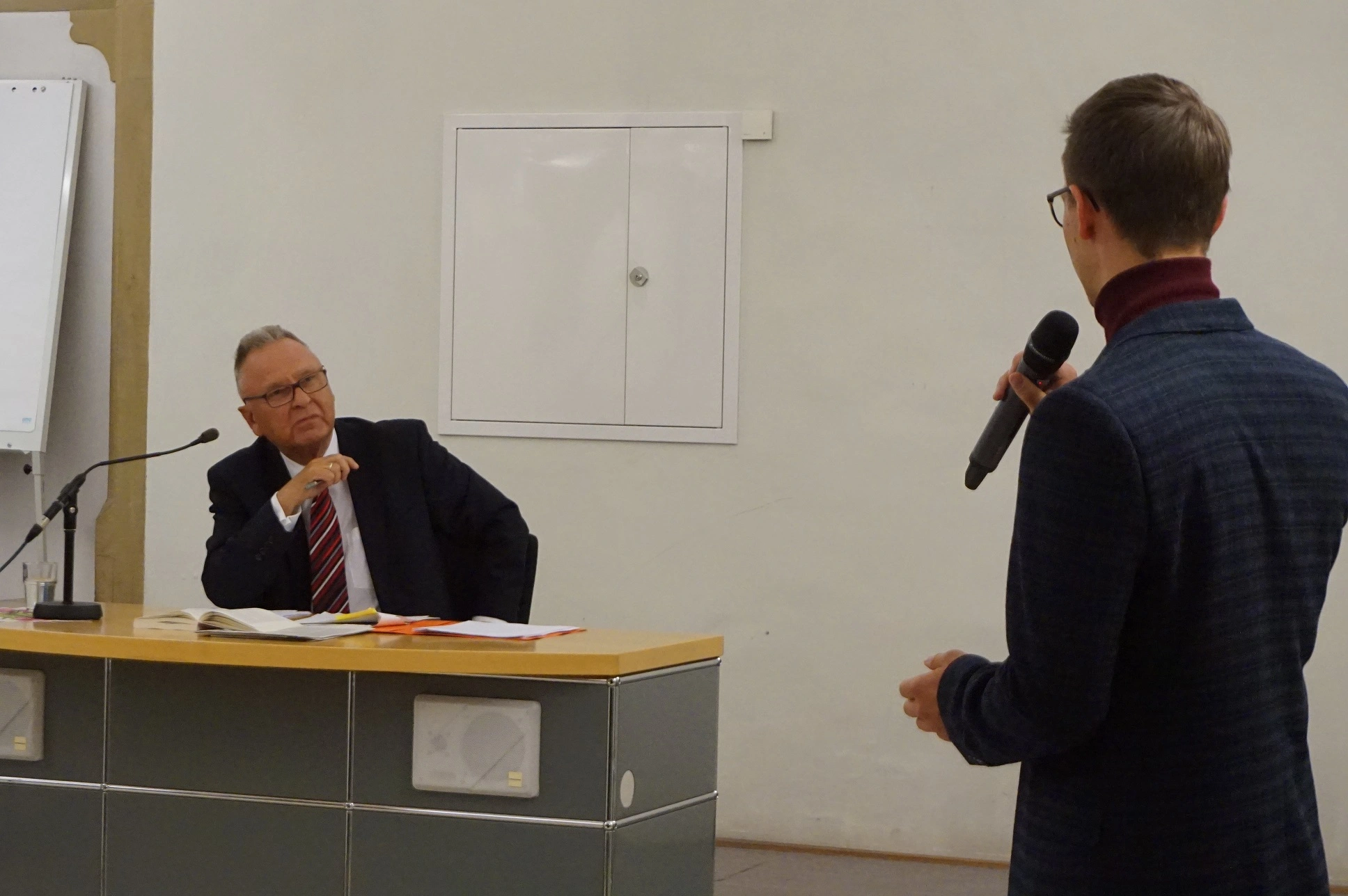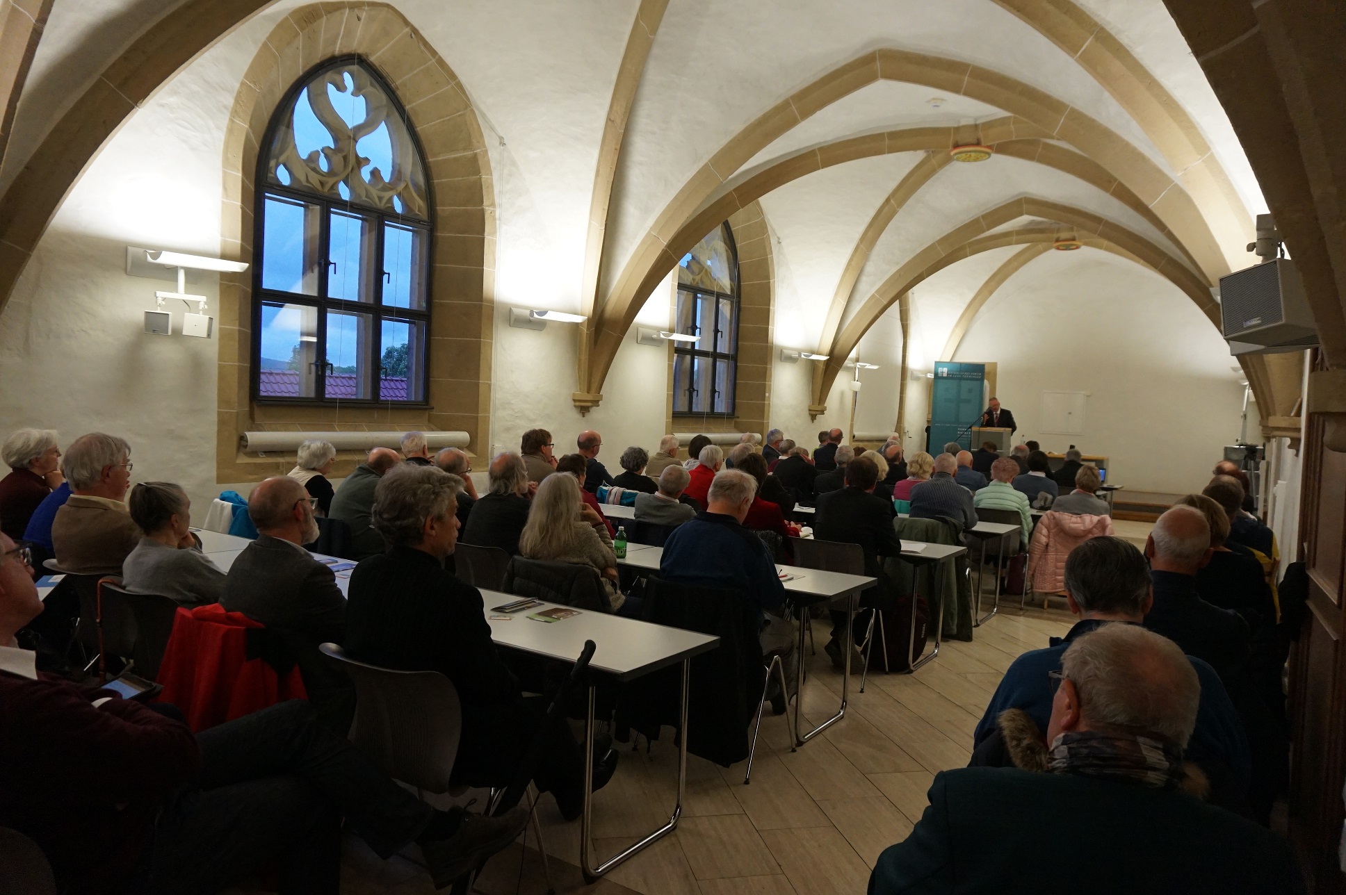 Mit dieser These eröffnete Hans-Jürgen Papier, ehemaliger Präsident des Bundesverfassungsgerichtes, am 8. Mai die diesjährigen Kreuzgang-Gespräche. Ausgehend von der Frage “Nur eine hinkende Trennung?” ergründete er die historischen und rechtlichen Grundlagen des deutschen Staatskirchenrechtes. Das Verhältnis zwischen Staat und Religion müsse dabei stets unter den Bedingungen religiös-weltanschaulicher Pluralität betrachtet werden, erklärte er. Damit lenkte der Jurist den Blick auf historische sowie moderne Gesellschaften, in den verschiedene Weltanschauungen nebeneinander leben und wirken. In dieser weltanschaulichen Vielfalt müsse der Staat einen neutralen Standpunkt wahren, denn: „Nur ein Staat, der nicht auf religiösen Werten basiert, kann Frieden in einer Zeit religiöser Kriege sicherstellen“, argumentierte Papier.