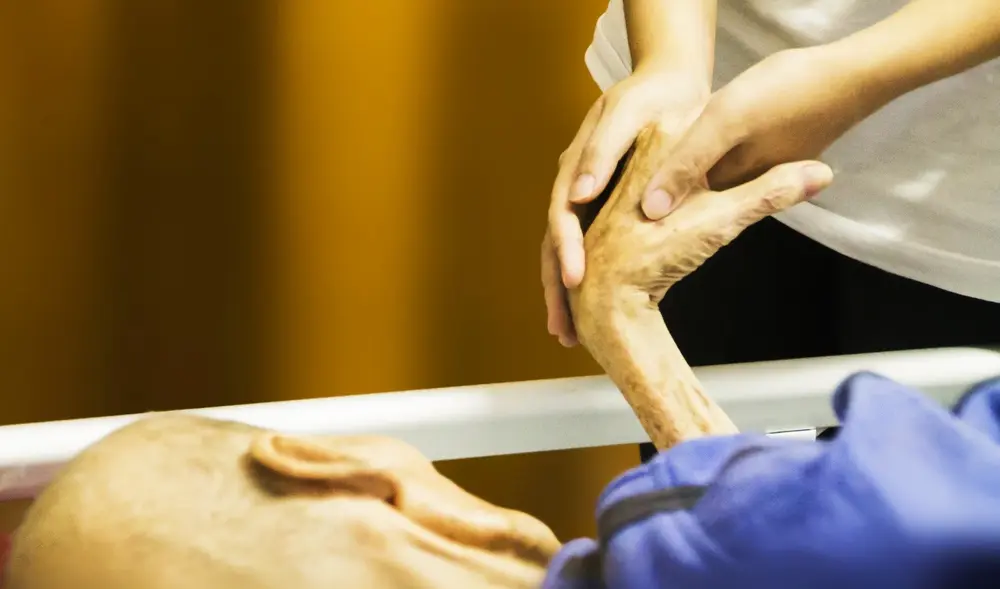 Symbolbild Sterbehilfe - Hände von einer im Sterben liegenden Person halten