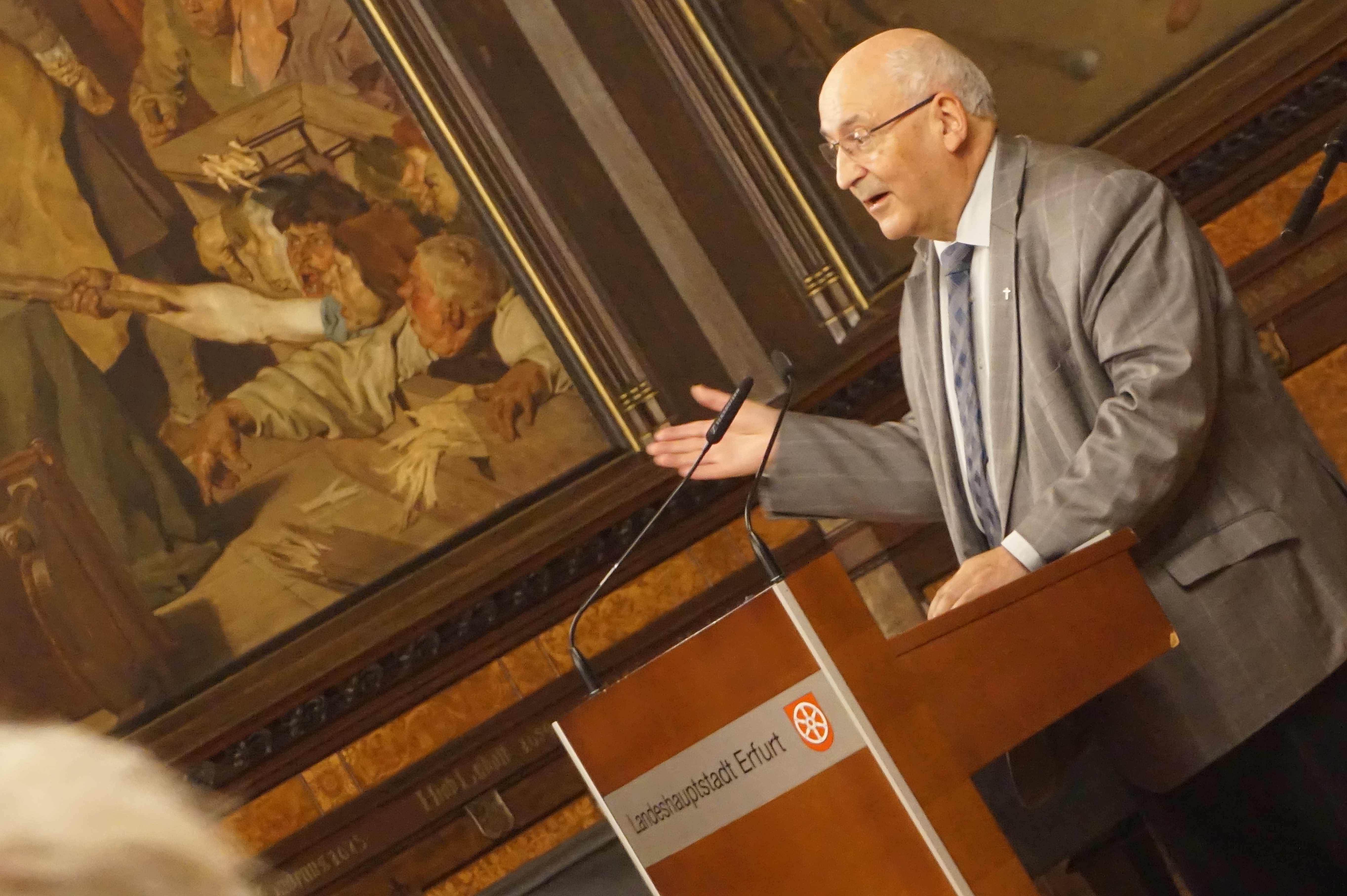 Am vergangenen Mittwoch haben die Katholisch-Theologische Fakultät der Universität Erfurt und das Katholische Forum im Land Thüringen gemeinsam ihre neue Veranstaltungsreihe “Theologie im Gespräch” im Erfurter Rathaus eröffnet. Über 120 Gäste waren im Festsaal erschienen, um mit Vertreterinnen und Vertretern aus Bundes- und Landespolitik über aktuelle gesellschaftliche und politische Entwicklungen zu diskutieren.