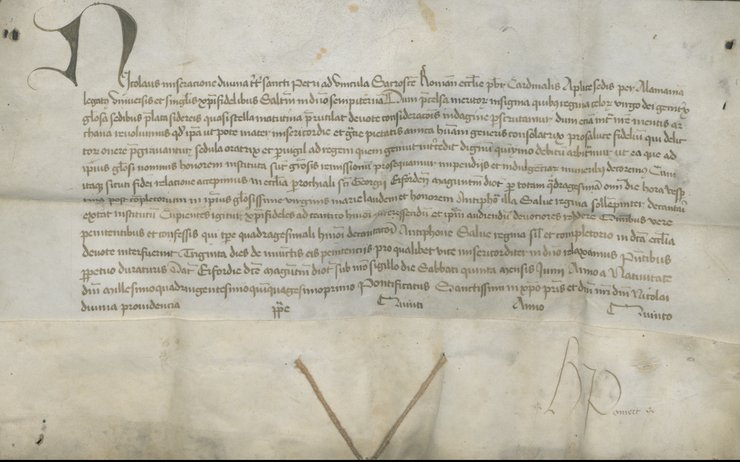 Abbildung: Ablass für die Erfurter Georgskirche vom 5. Juni 1451.