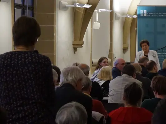 Mit einer anderen Definition von Hoffnung begann die Linzer Pastoraltheologin Klara Antonia Csiszar ihren Vortrag am zweiten Abend der Reihe: „Hoffnung ist die Gewissheit, dass etwas Sinn hat, egal wie es ausgeht.“ Diese Art der Hoffnung habe sie auch während ihres Engagements im Rahmen der Weltsynode motiviert. In der Synodalität sieht Csiszar nicht nur einen neuen Weg für die Kirche, sondern ein im gesamtgesellschaftlichen Kontext „antizyklisches Projekt“, da es „statt Spaltung Kohäsion und Wechselseitigkeit“ anstrebe. Anschließend an den verstorbenen Papst Franziskus begreife sie Synodalität als Prozess im Sinne einer „pilgernden, sich wandelnden Kirche“, aber auch als spirituelle Haltung, die es möglich macht, trotz Unterschieden im Gespräch zu bleiben. Spannungen sollen hierbei nicht vermieden, sondern aktiv adressiert werden. Ziel sei es, eine heilsame Balance zwischen Zentralisierung und Dezentralisierung zu finden, die Katholizität in ihrer Diversität annehme und widerspiegele.
